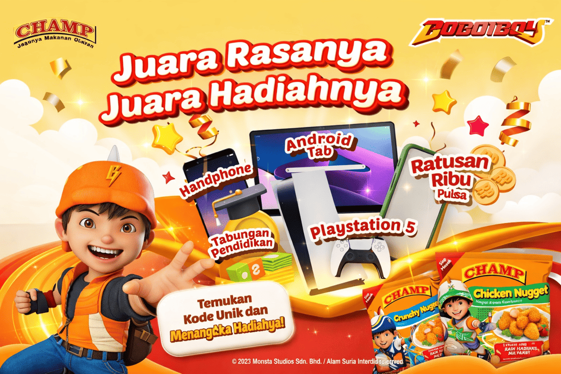 Program promo dari Champ x BoBoiBoy makin ramai dan terus menarik perhatian. Jumlah peserta yang ikut semakin bertambah, diikuti dengan pemenang baru di setiap periodenya. Dengan total hadiah bernilai milyaran rupiah, program ini menghadirkan berbagai hadiah impian seperti PS5, tablet Android, smartphone, tabungan pendidikan, hingga pulsa. Semakin banyak pembelian dan kode yang dikumpulkan, semakin besar peluang untuk menang.