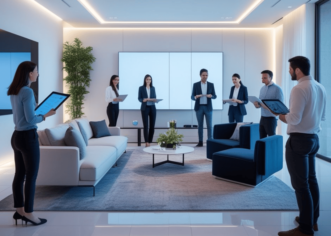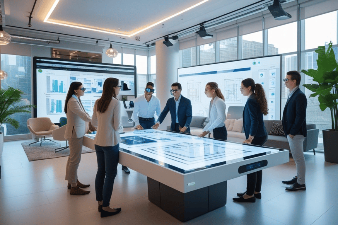 Teknologi ini mendukung terciptanya smart office yang memaksimalkan fungsi ruang untuk berbagai aktivitas kerja. Fokus utama adalah meningkatkan pengalaman pengguna dengan cara yang intuitif dan tidak mengganggu estetika desain.