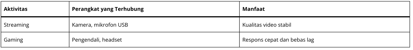 Kinerja 5Gbps mendukung aliran data video berkualitas tinggi tanpa gangguan. Streamer dapat menempatkan kamera atau mikrofon di posisi ideal tanpa khawatir kehilangan kualitas.