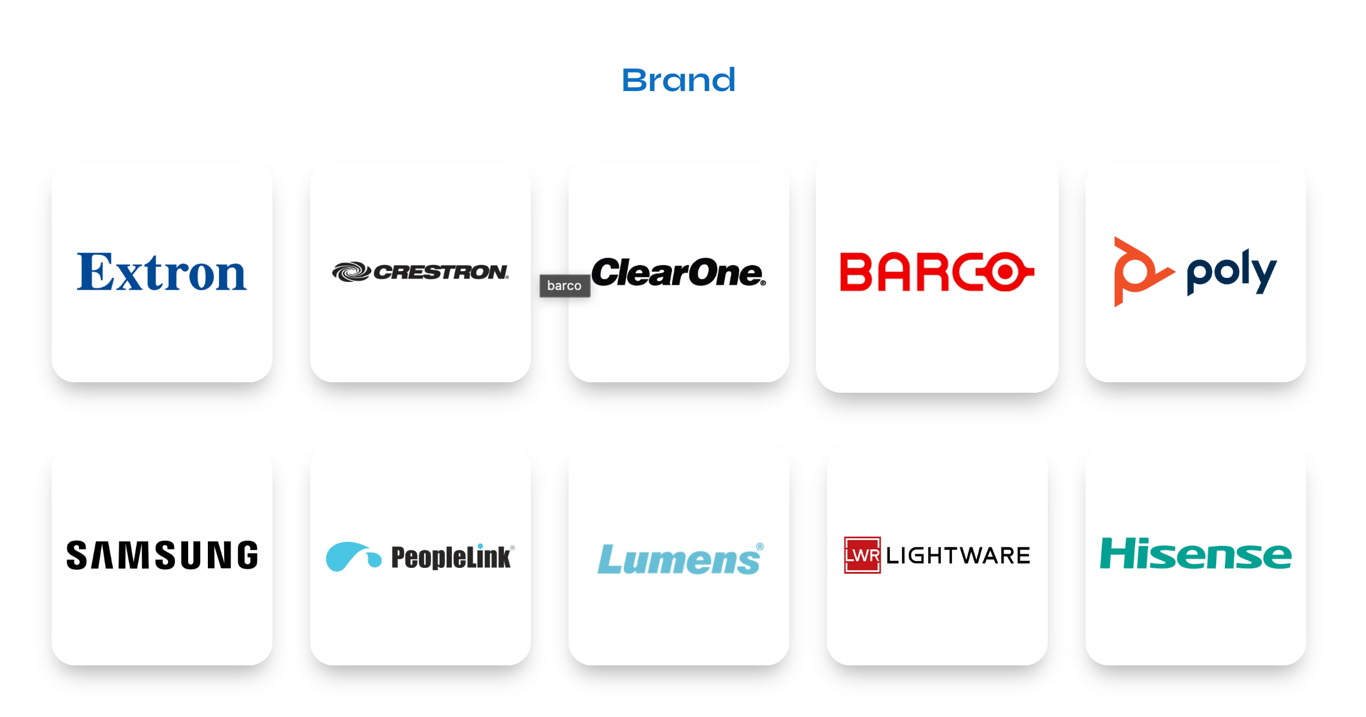 MLV Teknologi menghadirkan brand-brand ternama yang sudah dikenal luas di industri. Beberapa nama utama adalah Extron, Crestron, Clearone, Barco, Poly, Samsung, Lightware, Peoplelink, Lumens, Hisense, dan Halp.