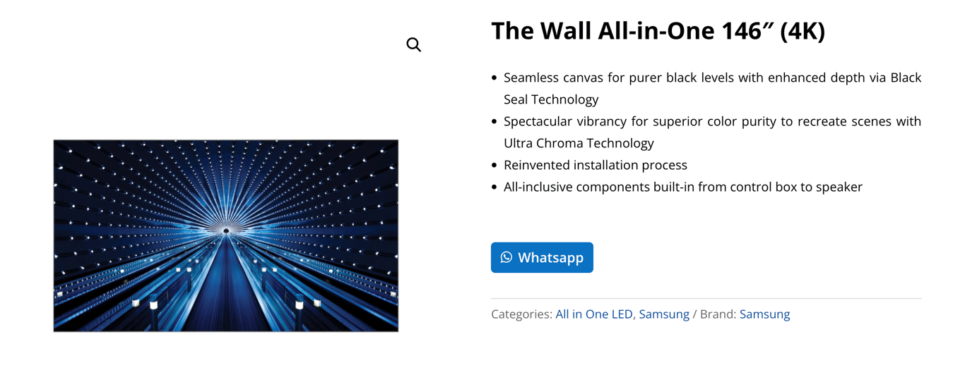 Halaman produk menyediakan produk audio visual dari brand terpercaya.Produk dikategorikan dengan spesifikasi yang jelas untuk memudahkan pelanggan.Solusi ini ditujukan untuk kebutuhan bisnis dan institusi dengan fokus pada kualitas.