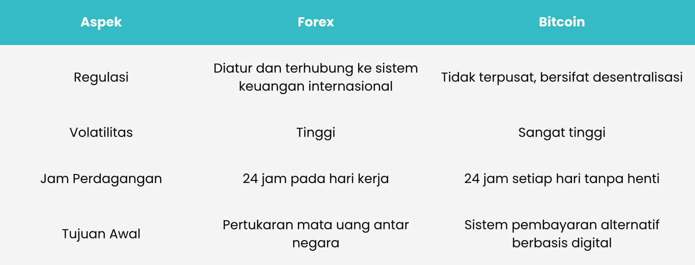 Dalam dunia keuangan modern, Bitcoin dan forex menjadi dua instrumen yang kerap diburu karena potensi keuntungannya. Meski keduanya termasuk dalam kategori investasi dengan risiko tinggi, mereka memiliki sifat dan mekanisme yang sangat berbeda.