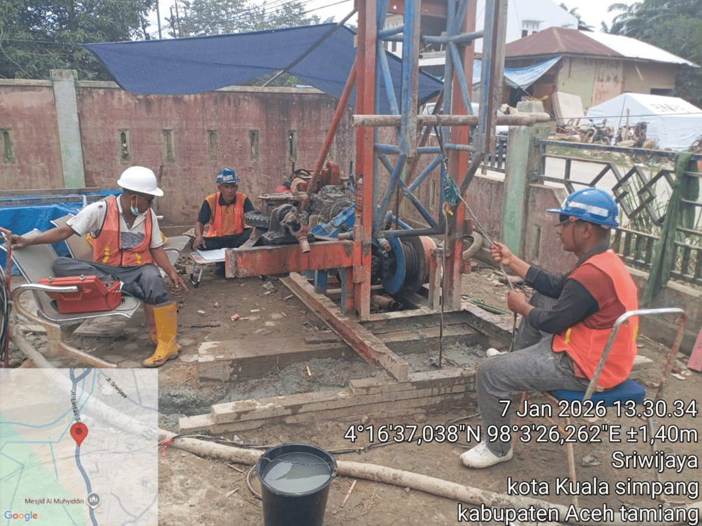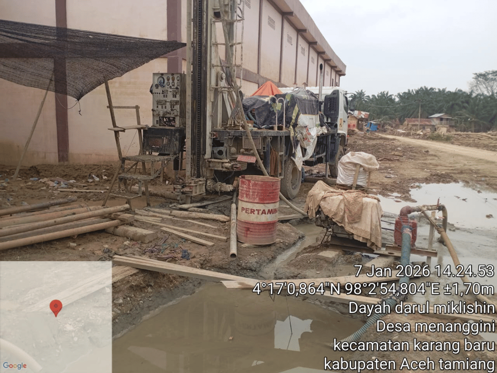 3.    Kantor Datok Gampong Menanggini, Karang Baru: Proses pengeboran pilot hole mencapai 25 meter dan sedang dalam penanganan teknis pascakerusakan alat.