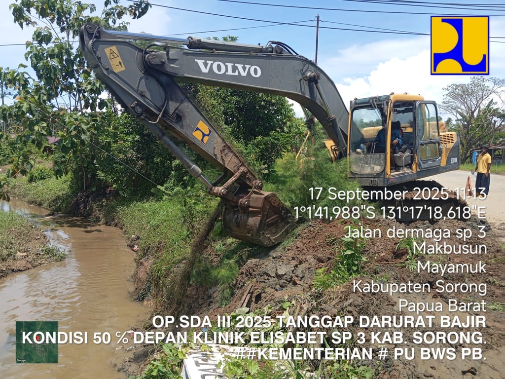Sebagai respons langsung di lapangan, Kementerian PU melalui Balai Wilayah Sungai (BWS) Papua Barat telah menurunkan dua unit ekskavator. Alat berat ini dikerahkan untuk melakukan pengerukan dan normalisasi pada dua titik krusial, yaitu kanal Makbusun di SP 3, Distrik Mayamuk, serta Sungai Klafma di Distrik Aimasi, Kabupaten Sorong. Upaya ini bertujuan untuk memperlancar kembali aliran air, mengurangi genangan yang merendam permukiman, dan meminimalkan potensi terjadinya banjir susulan.