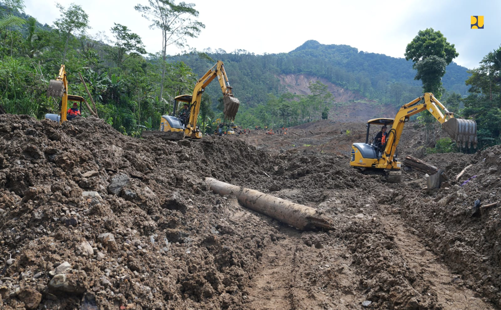 Sebanyak 23 unit excavator gabungan dari balai teknis Kementerian PU dan pemerintah daerah kini telah beroperasi di sektor pencarian yang diduga kuat menjadi lokasi korban tertimbun. Mitra kerja penyedia jasa juga mendirikan posko berkapasitas 20 orang dan menyuplai perlengkapan lapangan seperti sepatu boot, terpal, drum penampung solar, serta bantuan Bahan Bakar Minyak (BBM).