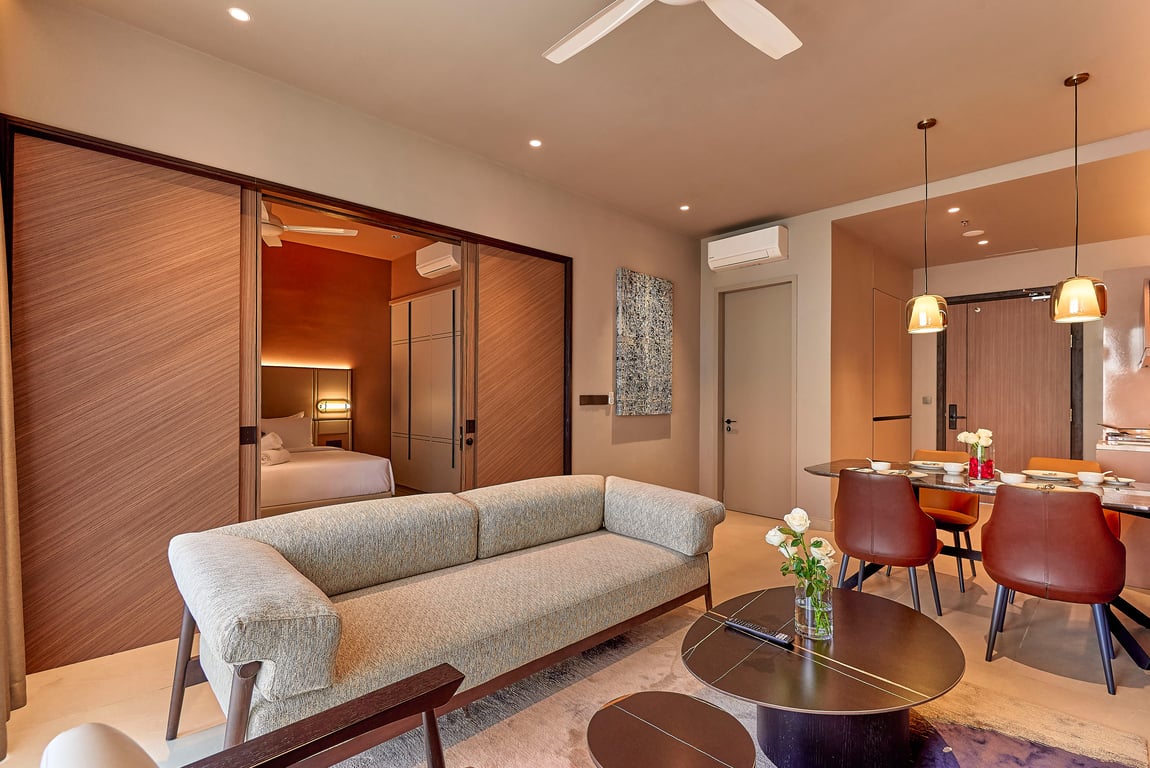 Seluruh unit dilengkapi interior modern, perabot premium, fasilitas memasak, serta mesin cuci dalam unit, memberikan fleksibilitas mandiri tanpa mengorbankan kenyamanan kelas hotel. Baik untuk liburan singkat maupun masa inap jangka panjang, ruang-ruang ini memenuhi kebutuhan berbagai jenis tamu.