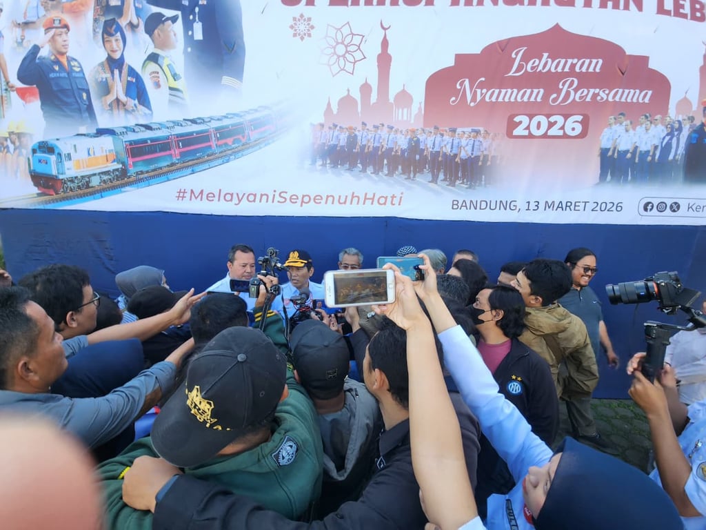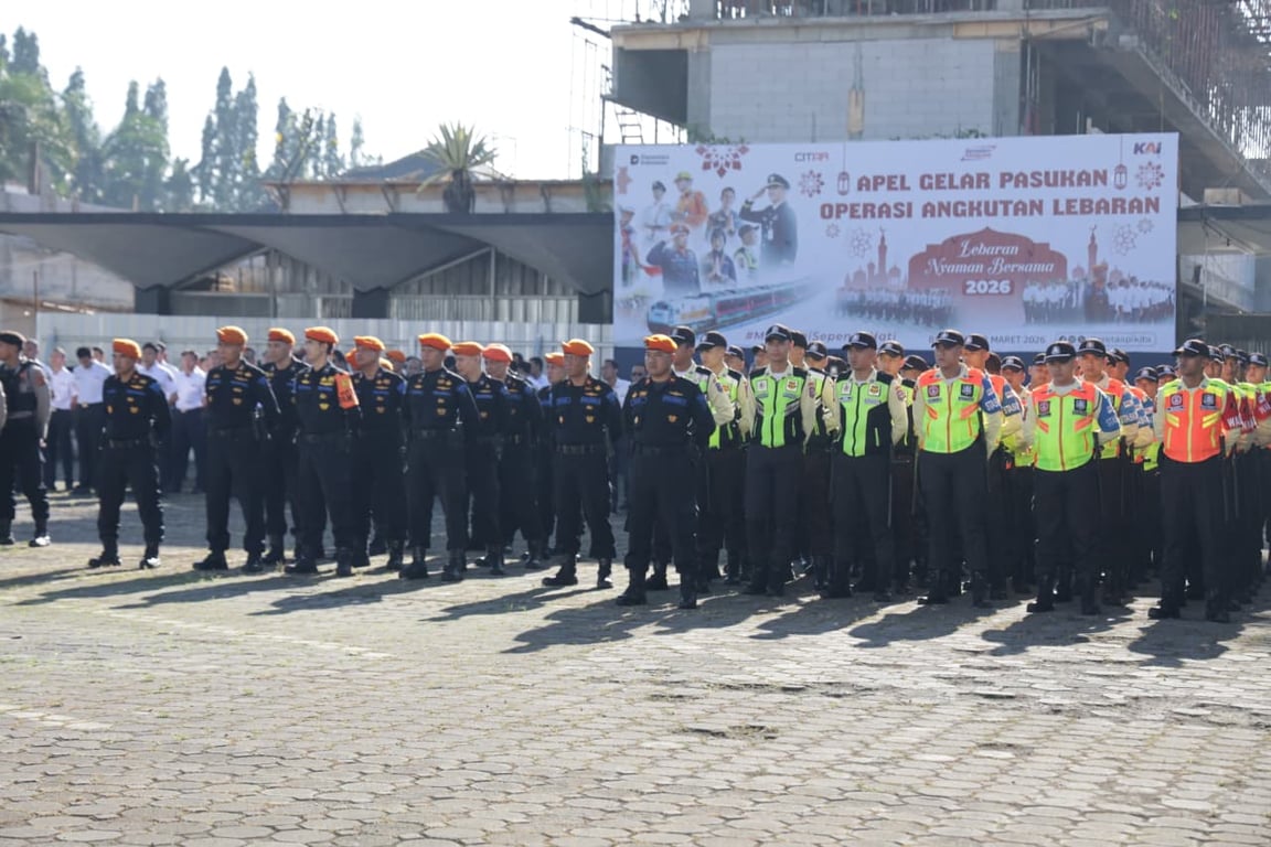Bandung (Jawa Barat), 13 Maret 2026 - PT Kereta Api Indonesia (Persero) Daerah Operasi 2 Bandung menyatakan kesiapan penuh dalam melayani pelanggan yang akan menggunakan transportasi kereta api pada masa Angkutan Lebaran 2026. Hal tersebut ditandai dengan dilaksanakannya Apel Gelar Pasukan Posko Angkutan Lebaran 2026 di halaman Stasiun Bandung pada Jumat, 13 Maret 2026.