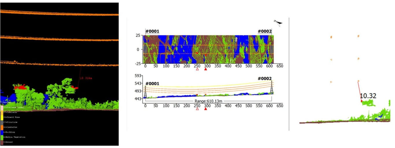 Dalam inspeksi power line, penggunaan drone yang dilengkapi sensor LiDAR memungkinkan pengumpulan data spasial beresolusi tinggi untuk mendukung pemeliharaan jaringan, analisis risiko, serta perencanaan jangka panjang. Data yang dihasilkan memberikan gambaran detail kondisi kabel, struktur tower, hingga lingkungan di sekitarnya, termasuk vegetasi yang berpotensi mengganggu jalur transmisi.