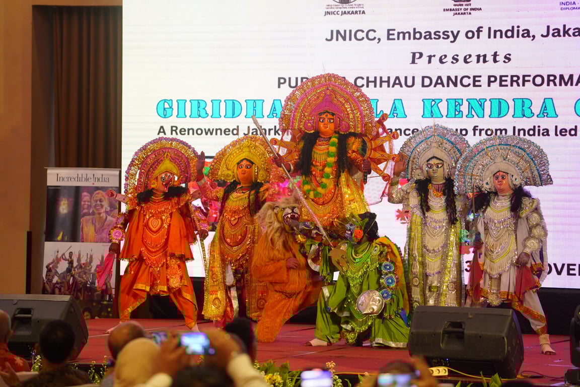 Acara dimulai dengan berbagai penampilan seni yang menampilkan kekayaan budaya India. Salah satu yang mencuri perhatian adalah tarian Bollywood yang enerjik, diikuti dengan Purulia Chhau Dance Performance, yang memperlihatkan kekuatan dan ketangkasan gerakan tradisional India. Bahkan, musik Dhol, alat musik khas India yang sering mengiringi pertunjukan musik Punjabi, turut menghidupkan suasana dan menambah kemeriahan malam itu.