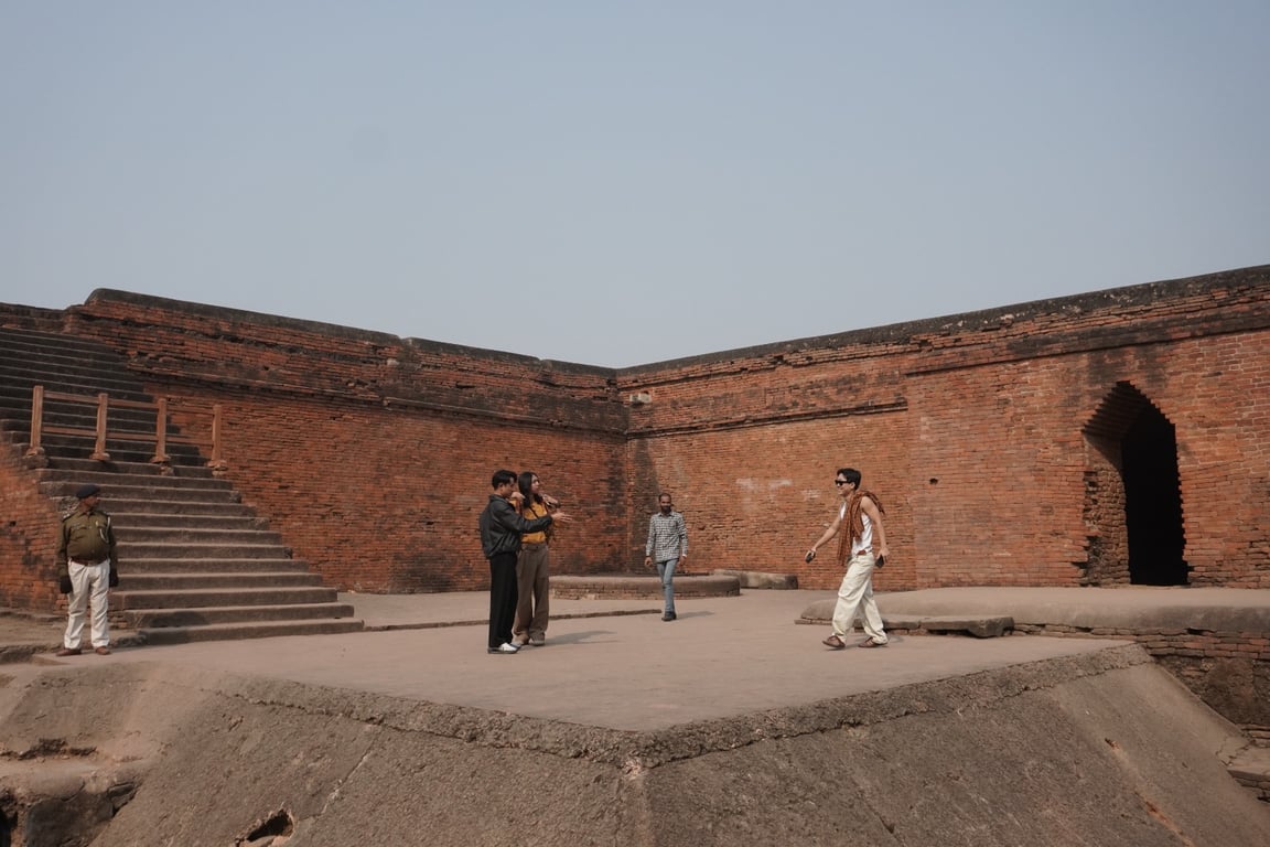 Perjalanan berlanjut ke Reruntuhan Nalanda Mahavihara, salah satu pusat pendidikan terbesar di dunia pada masanya. Berjalan di antara sisa-sisa biara dan ruang belajar, para peserta melihat bukti nyata pertukaran ilmu lintas Asia yang telah berlangsung berabad-abad lalu.