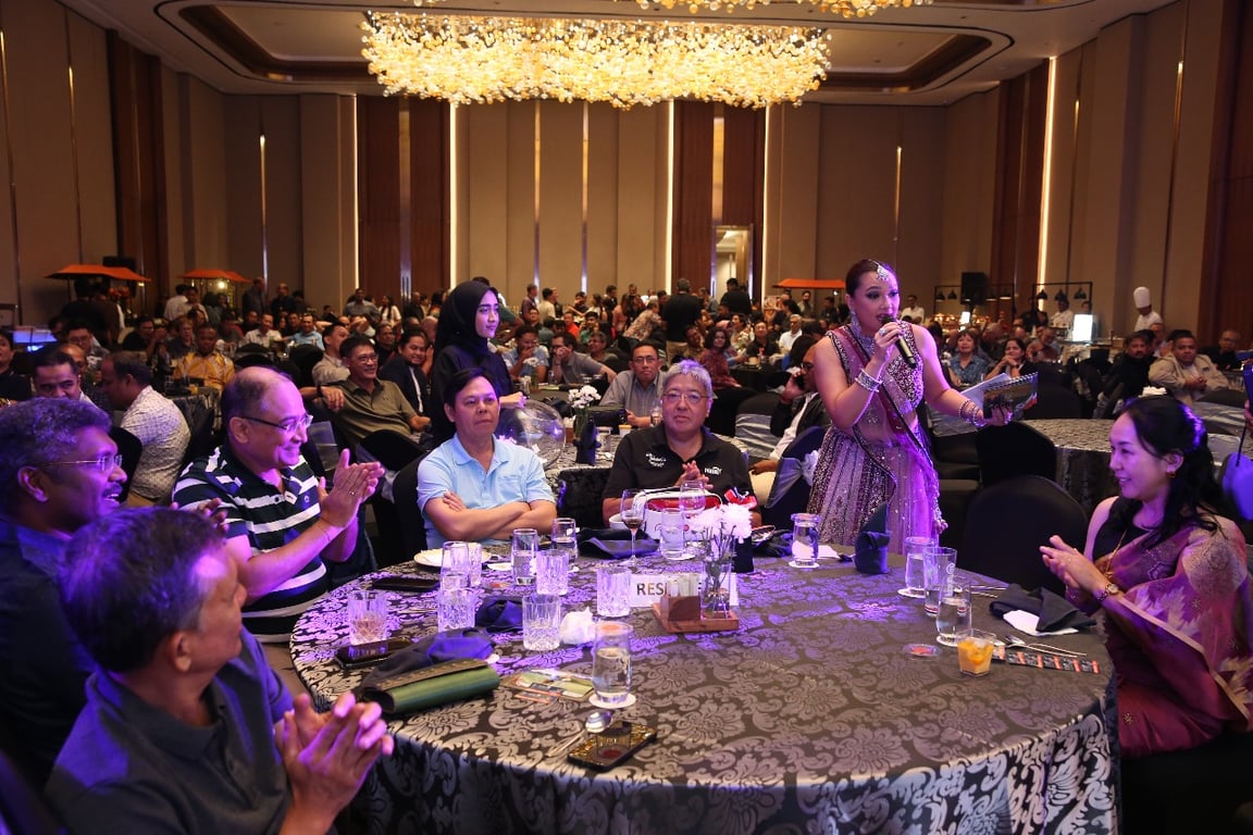 Para tamu menikmati hidangan istimewa persembahan sponsor, ditemani hiburan musik dan interaksi hangat. Sorak-sorai semakin ramai saat raffle draw dimulai, dengan hadiah mulai dari voucher hotel dan restoran, perangkat elektronik, sepeda motor, hingga paket liburan.