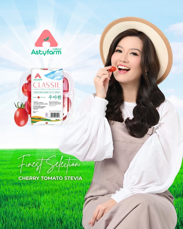 Astyfarm adalah perusahaan agritech Indonesia yang memproduksi Cherry Tomato Stevia—buah camilan sehat hasil perpaduan tomat cherry premium dan stevia alami. Dilengkapi teknologi infusion dari Korea dan kemasan Jepang, Astyfarm berkomitmen menghadirkan buah sehat, praktis, dan elegan untuk keluarga Indonesia.