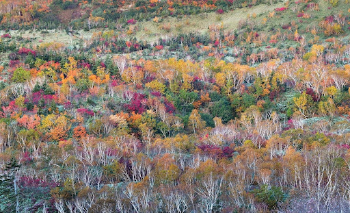 Setiap tahun dari pertengahan September, warna mulai muncul pada rerumputan rawa, dan dari awal hingga pertengahan Oktober, gunung ini diselimuti kontras warna merah nanakamado yang menyala dan pohon maple melawan kuning dari birch Erman. Pada hari musim gugur yang cerah, Anda bisa menyaksikan pemandangan menakjubkan dengan langit biru, puncak gunung putih, dan daun merah yang menyala dalam satu pandangan.