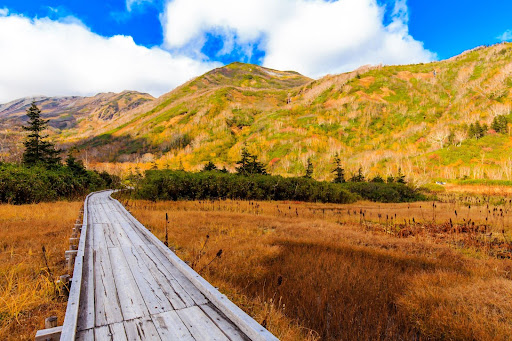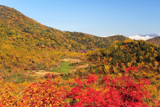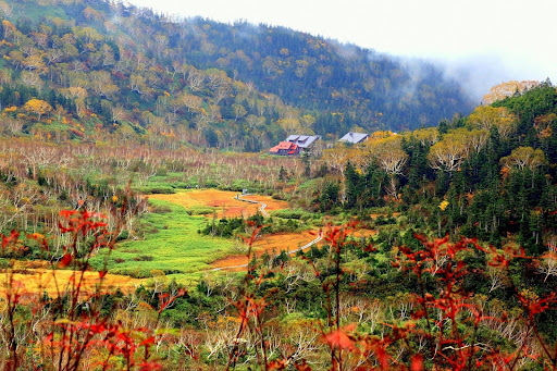 Salah satu tempat yang disarankan untuk warna daun adalah Taman Alam Tsugaike.
