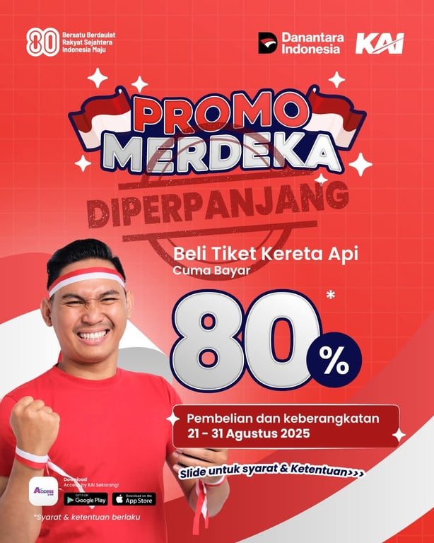 / Promo Merdeka Diperpanjang, Pelanggan Bisa Bayar Tiket KA 80% Saja hingga 31 Agustus 2025