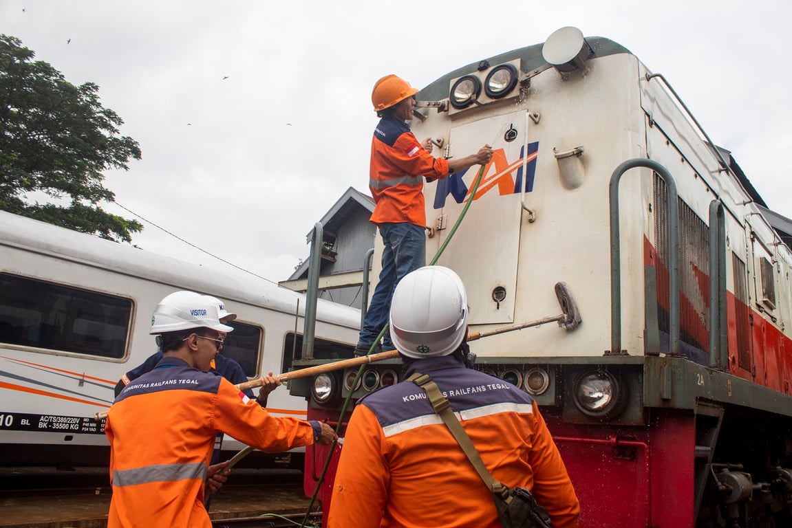 KAI Daop 4 Semarang bersama Komunitas Railfans Tegal menggelar kegiatan cuci lokomotif dan kereta di Depo Lokomotif Tegal. Kegiatan ini merupakan wujud kecintaan terhadap moda transportasi kereta api sekaligus bentuk sinergi positif antara KAI dan komunitas pecinta kereta api.