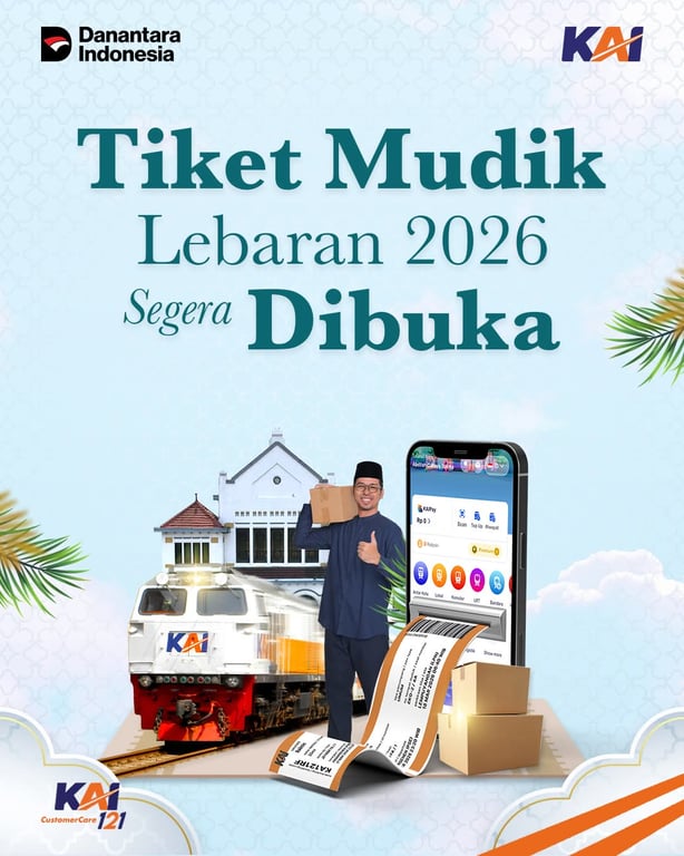 Masa Liburan Lebaran 2026 kian mendekat. Melalui skema pemesanan H-45, PT Kereta Api Indonesia (Persero) membuka penjualan tiket kereta api secara bertahap, sehingga masyarakat yang melakukan pemesanan pada 25 Januari 2026 sudah dapat merencanakan perjalanan untuk keberangkatan mulai 11 Maret 2026.
