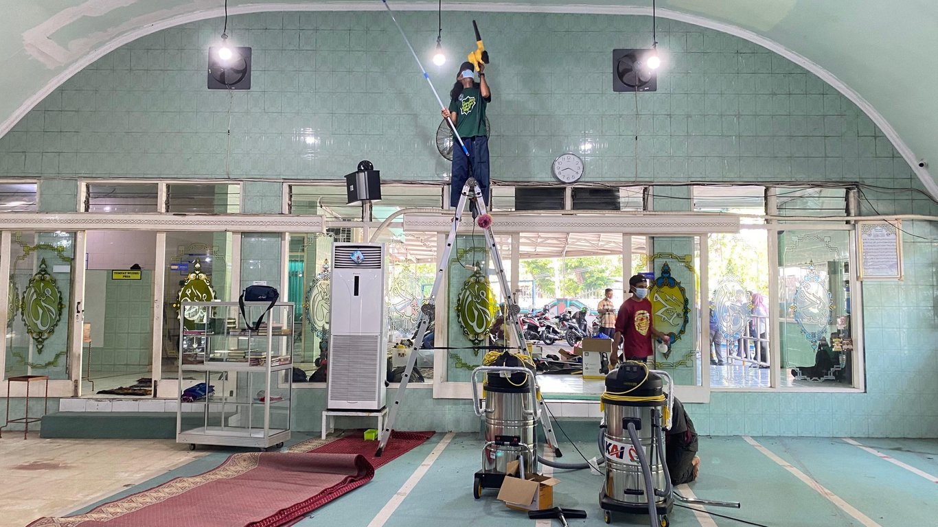 Tak hanya memberikan bantuan, KAI Daop 8 Surabaya dan Balai Yasa Surabaya Gubeng juga turut serta dalam aksi bersih-bersih Masjid, mulai dari menyapu halaman, mengepel lantai, membersihkan karpet, merapikan kembali Al-Qur'an di tempatnya, membersihkan almari tempat mukena dan sarung, membersihkan langit - langit, hingga pembersihan sanitasi pun dilakukan dengan membersihkan kamar mandi dan tempat wudhu.