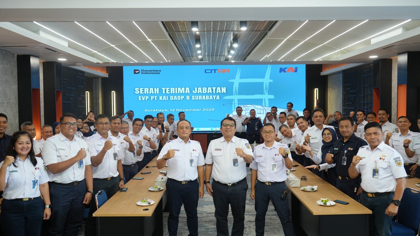 Dalam rangka penyegaran organisasi serta peningkatan kinerja pelayanan kepada pelanggan, PT Kereta Api Indonesia (Persero) Daerah Operasi 8 Surabaya melaksanakan serah terima jabatan Kepala Daop 8 Surabaya dari Wisnu Pramudyo kepada Daniel Johanes Hutabarat, pada Rabu (12/11) bertempat di Kantor Daop 8 Surabaya.