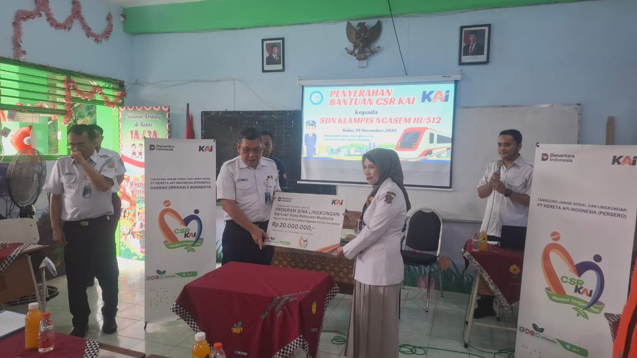 Sebagai bentuk komitmen terhadap tanggung jawab sosial dan lingkungan, PT Kereta Api Indonesia (Persero) Daerah Operasi 8 Surabaya menyalurkan bantuan melalui Corporate Social Responsibility (CSR) program Bina Lingkungan untuk mendukung renovasi Musala di SD Negeri Komplek Kenjeran II / 506 Surabaya, dan SD Negeri Klampis Ngasem III / 512 Surabaya.
