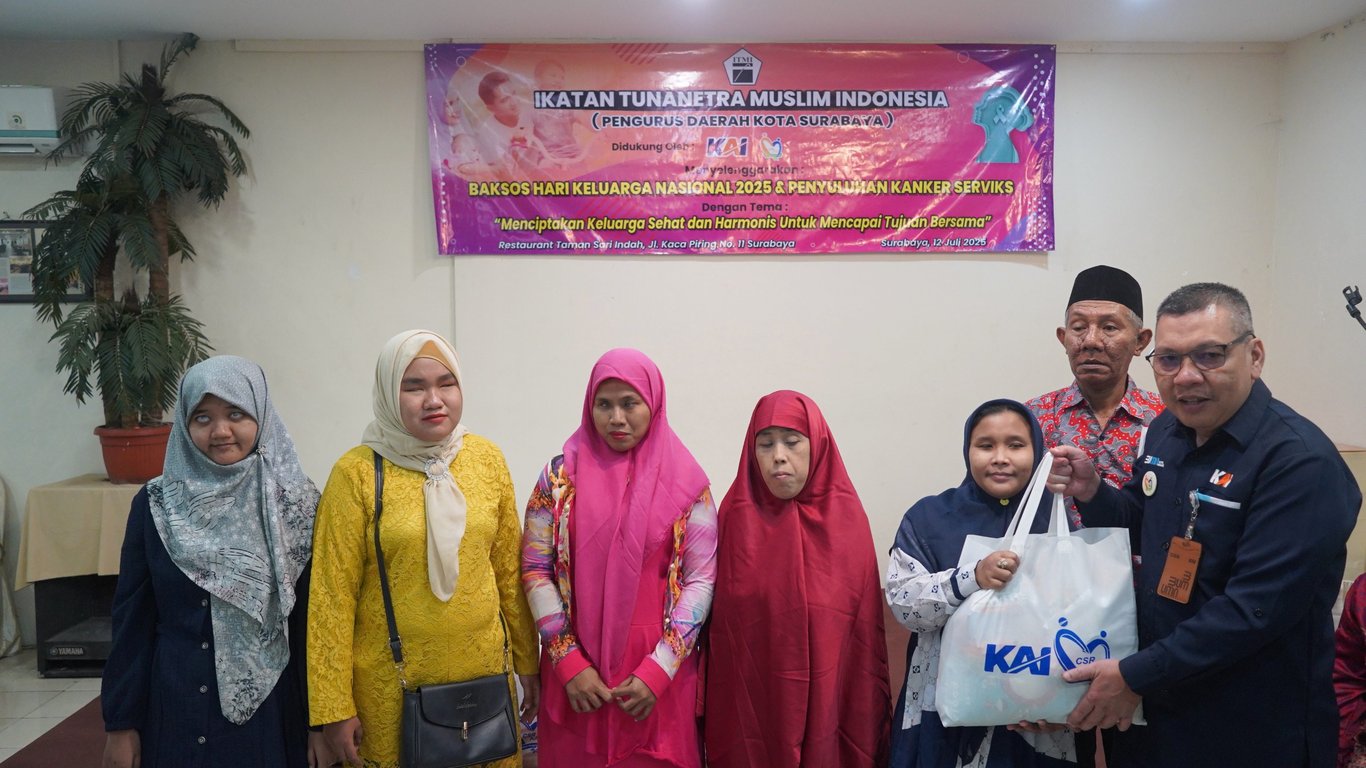 Sebagai bentuk kepedulian terhadap penyandang disabilitas, KAI Daop 8 Surabaya kali ini menyalurkan bantuan sosial berupa paket sembako kepada para penyandang tuna netra yang tergabung dalam Persatuan Ikatan Tunanetra Muslim Indonesia (ITMI) Kota Surabaya, Sabtu (12/7).
