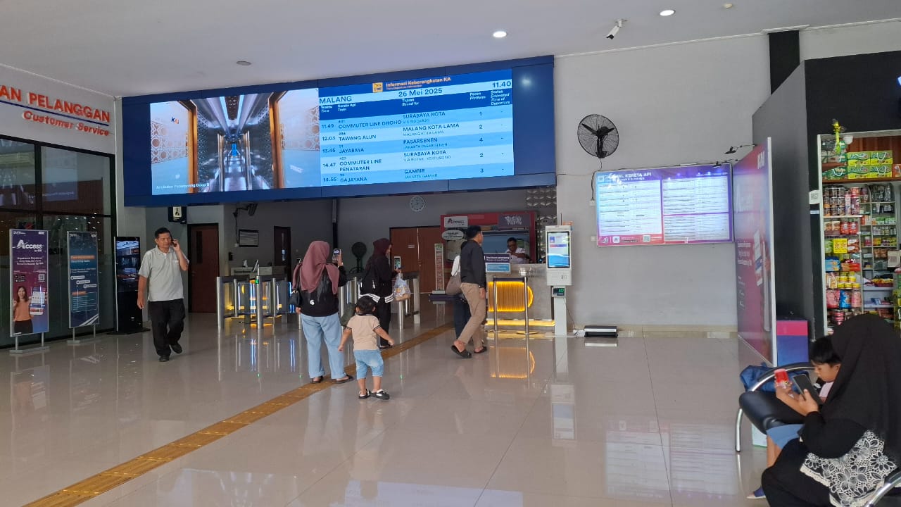 Berdasarkan data per Kamis (29/5) pukul 10.00 WIB, sebanyak 7.609 penumpang tercatat menggunakan layanan kereta api melalui Stasiun Malang pada hari ini. Dari jumlah tersebut, 3.538 penumpang berangkat (naik), sementara 4.071 penumpang tiba (turun). Data ini bersifat sementara dan diperkirakan masih akan bertambah hingga keberangkatan KA jarak jauh malam hari.