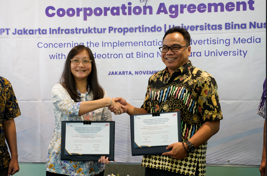 Jakarta, 3 November 2025 – PT Jakarta Infrastruktur Propertindo (JIP) bersama Binus University menandatangani Perjanjian Kerja Sama (PKS) untuk penyelenggaraan media periklanan digital di lingkungan Universitas Bina Nusantara (BINUS) Kampus Kemanggisan, Jakarta.