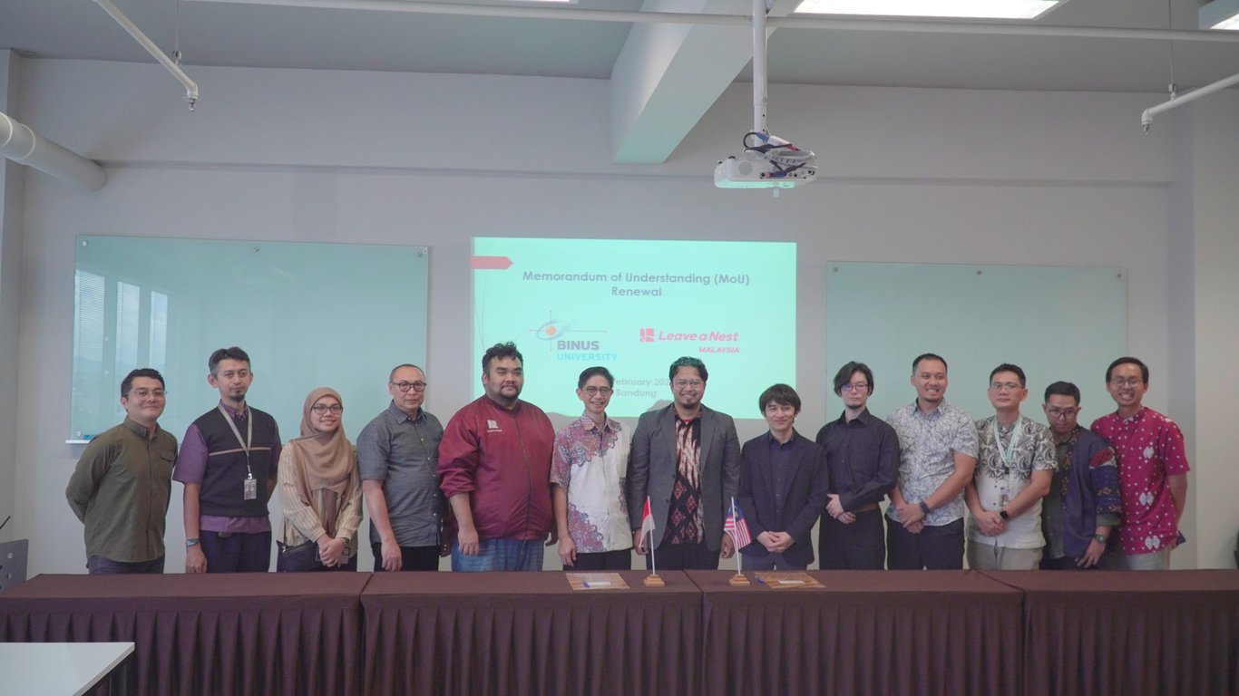 Perpanjangan kerja sama tersebut diwujudkan melalui penandatanganan Memorandum of Understanding (MoU) Renewal yang berlangsung pada Kamis, 5 Februari 2026,  di BINUS @Bandung Paskal Campus. Penandatanganan dilakukan oleh Campus Director BINUS @Bandung, Dr. Johan Muliadi Kerta, S.Kom., M.M., bersama Mr. Nur Ahmad Zaim Hussin, Director of Leave a Nest Malaysia, sebagai simbol komitmen bersama dalam memperluas kolaborasi internasional di bidang pendidikan, riset, dan inovasi.
