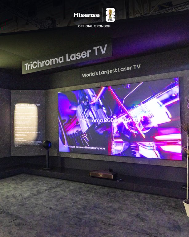 Hisense juga memperkenalkan secara global Laser Projector XR10, yang menghadirkan kecerahan hingga 6.000 ANSI lumens untuk menciptakan pengalaman home cinema kelas profesional. Dirancang untuk tampilan imersif hingga 300 inci, XR10 menghadirkan tingkat kecerahan yang lebih tinggi dan performa warna yang kaya untuk ruang home theater khusus. Bersama TV RGB MiniLED, teknologi TriChroma Laser memperluas penawaran display layar besar Hisense, mulai dari pengalaman premium di ruang keluarga hingga lingkungan home cinema khusus.