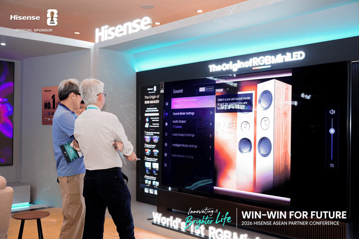Hisense mengadakan ASEAN 2026 Partner Conference di Kuala Lumpur, yang dihadiri oleh mitra, distributor, media dan KOL dari seluruh kawasan ASEAN. Mengusung tema “Innovating A Brighter Life, Win-Win for Future”, Hisense secara resmi meluncurkan rangkaian produk display flagship, termasuk 116inci RGB MiniLED UXQ TV—terbesar di dunia, Triple-Color Laser Cinema L9Q, serta Laser Projector XR10, sebagai bukti kekuatan inovasi teknologi dan komitmen jangka panjangnya di pasar ASEAN.