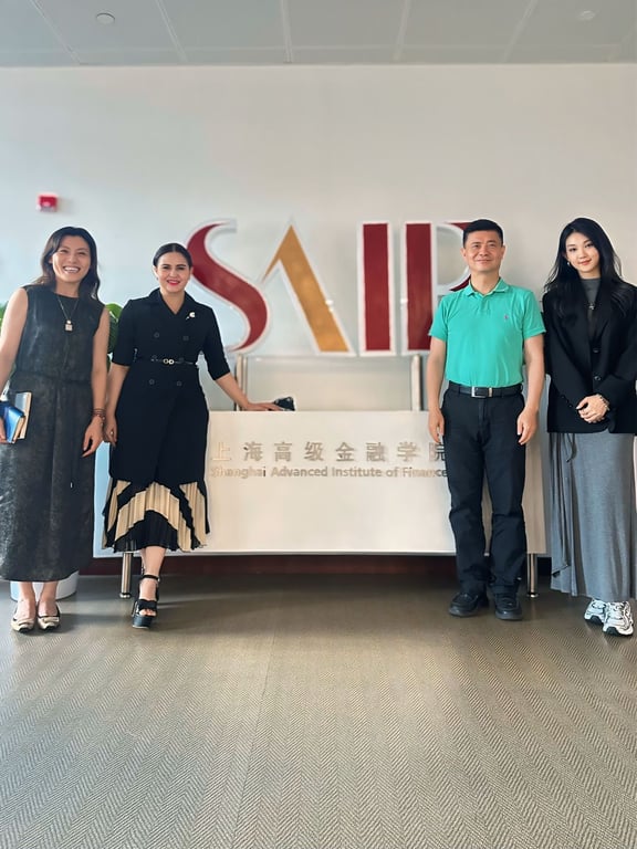 Shanghai, 24 Juli 2025,CEO Garuda Ventrue Capital, Denia Yuniarti Abdussamad, melakukan kunjungan resmi ke Shanghai Advanced Institute of Finance (SAIF) untuk membahas potensi kerja sama strategis antara Indonesia dan Tiongkok dalam sejumlah sektor prioritas. Dalam pertemuan tersebut, dibahas peluang kolaborasi di bidang logistik rantai dingin (cold logistics), infrastruktur dan energi, serta rencana inisiasi program edukatif internasional bertajuk Asia Pacific Executive Exchange (APEX GLOBAL).