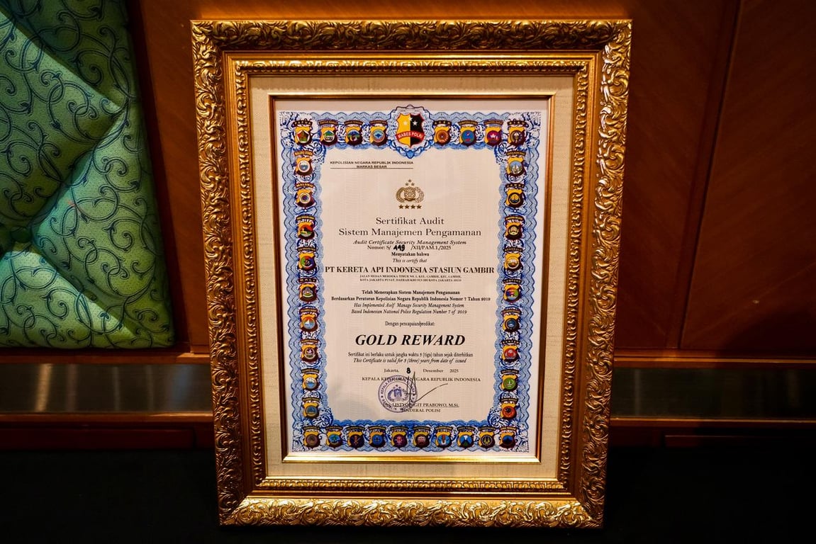 / Stasiun Gambir Raih Sertifikat Sistem Manajemen Pengamanan Kategori GOLD dari Baharkam Polri