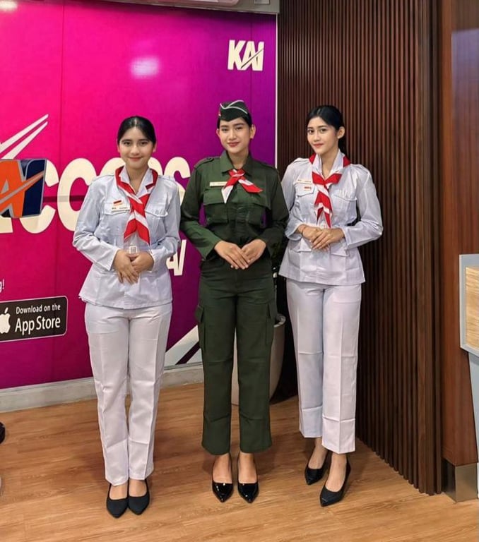 / Semangat Hari Pahlawan, Frontliner KAI Daop 1 Jakarta Sapa Pelanggan dengan Kostum Pahlawan