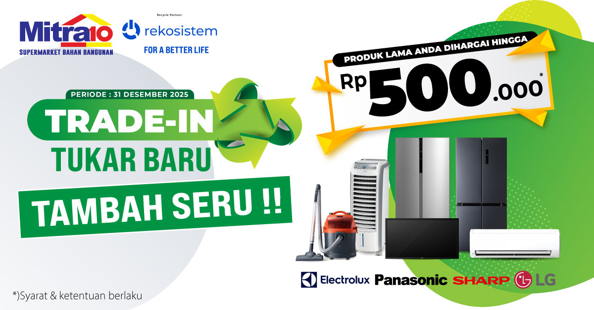 Program Trade-In ini berlaku hingga 31 Desember 2025 di sejumlah toko Mitra10 area Jabodetabek, dan dapat digunakan untuk pembelian produk dari merek seperti LG, Sharp, Panasonic, dan Electrolux.