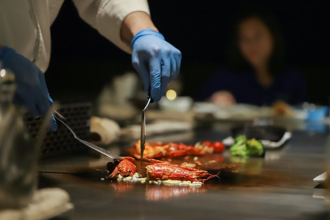 Nikmati aksi teppanyaki langsung dengan latar Danau Toba yang memukau.