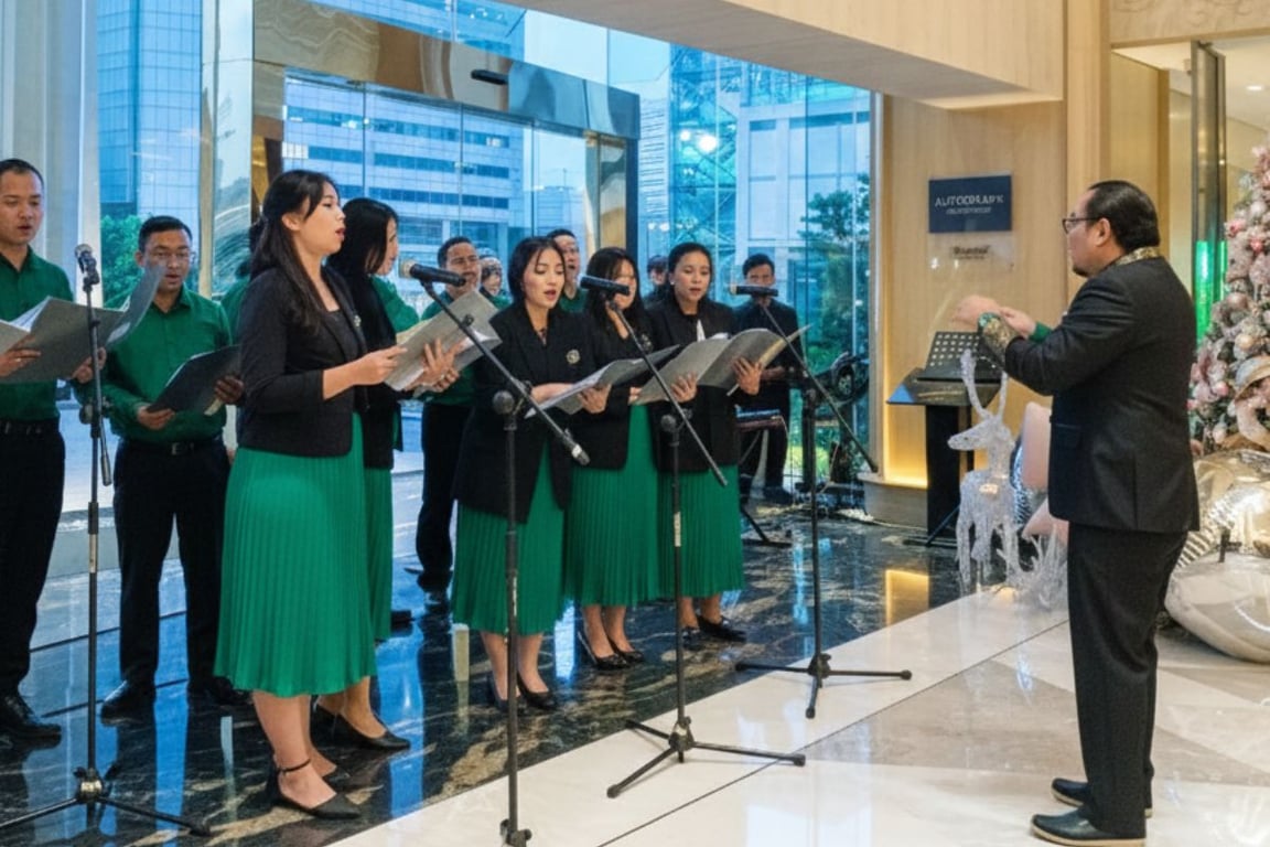 Momen penyalaan pohon Natal semakin meriah dengan hadirnya Christmas Choir dari para staf Sari Pacific Jakarta, yang menyanyikan lagu-lagu Natal klasik dan kontemporer dengan harmoni yang indah. Penampilan choir ini menciptakan atmosfer yang hangat, intim, dan penuh makna, menghadirkan semangat Natal yang sesungguhnya di tengah kesibukan kota Jakarta. Partisipasi langsung staf hotel dalam seremoni ini mencerminkan dedikasi dan semangat kebersamaan yang menjadi inti nilai-nilai Sari Pacific Jakarta.