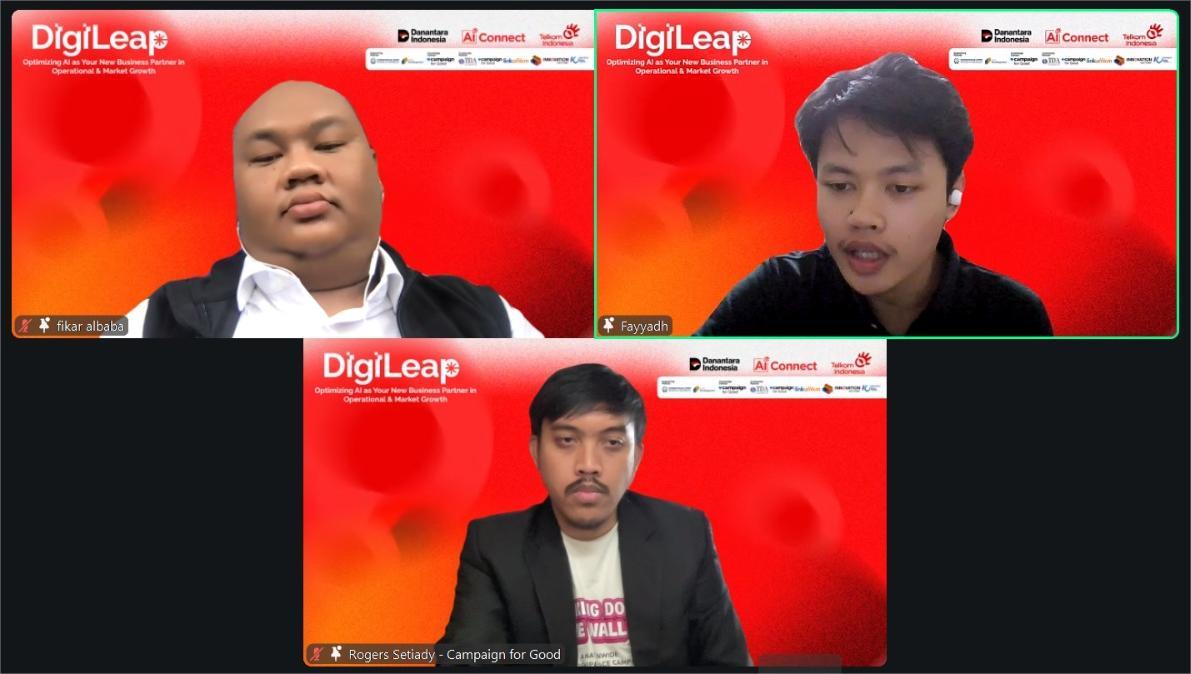 Telkom AI Center of Excellence Jakarta melalui pilar AI Connect telah sukses menyelenggarakan program daring, yaitu “DigiLeap: Optimizing AI as Your New Business Partner in Operational and Market Growth” dengan fokus pencerdasaan adopsi solusi Artificial Intelligence (AI) kepada para pelaku UMKM di seluruh Indonesia. DigiLeap dilaksanakan pada Sabtu, 29 November 2025 secara online guna memberikan wadah belajar interaktif yang terjangkau secara luas kepada para pelaku UMKM. Melalui program ini, Telkom AI Center menciptakan inisiatif untuk mengembangkan ekosistem AI Indonesia melalui digitalisasi bisnis guna mencapai tujuan bisnis yang berkelanjutan (sustainable) di tengah era transformasi digital.