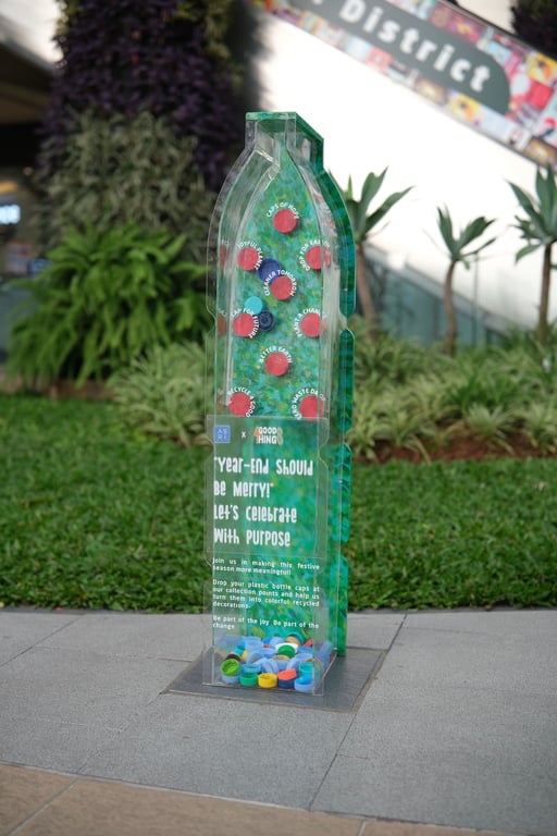 Kini, kamu bisa menemukan Plastic Cap Waste Dropbox di GGP, di mana kamu bisa menyumbangkan tutup botol plastik bekasmu. Tutup-tutup botol ini nggak akan berakhir di tempat sampah biasa. Sebaliknya, mereka akan diproses oleh tangan-tangan kreatif dari tim 4GoodThings, lalu disulap jadi instalasi dekorasi Christmas yang bukan hanya cantik, tapi juga penuh cerita.