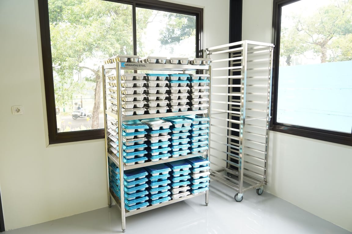 Selain produksi food tray, Krakatau Steel juga membangun dapur modular berbahan baja untuk menunjang operasional MBG. Dapur modular perdana telah diresmikan di Kota Cilegon dengan memanfaatkan struktur baja produksi PT Krakatau Baja Konstruksi.