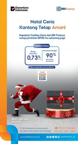 Sementara itu, BRI Flash menjadi solusi dana tunai multiguna yang memberikan pencairan hingga 90% dari nilai kendaraan atau maksimal Rp500 juta hanya dengan menjaminkan BPKB kendaraan, serta suku bunga ringan mulai dari sekitar 0,73% per bulan, memberi fleksibilitas bagi keluarga yang membutuhkan dana cepat untuk berbagai kebutuhan lain di luar pembelian kendaraan.