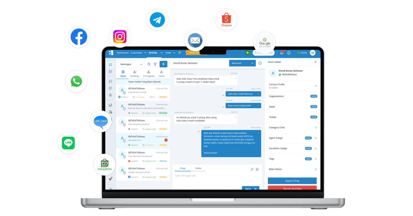 Barantum.com adalah perusahaan penyedia aplikasi CRM, AI Agent, sistem omnichannel chat, call center software dan BSP WhatsApp terkemuka dengan layanan terbaik di Indonesia. Barantum.com cocok digunakan untuk divisi penjualan, pemasaran, pusat panggilan, layanan pelanggan, telemarketing dan telesales.