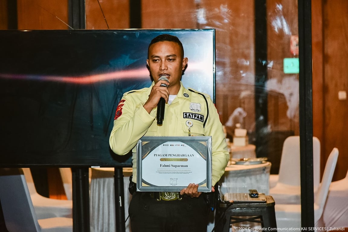Sebagai bentuk penghargaan atas dedikasi dan keberaniannya, KAI Services memberikan sertifikat dan pin apresiasi yang diserahkan langsung oleh Direktur Bisnis Korporasi dan Operasi KAI Services, Benny Rustanto, bersama Komisaris KAI Services, Samsul Bahri, di Loko Café Bandung pada Rabu (11/3).
