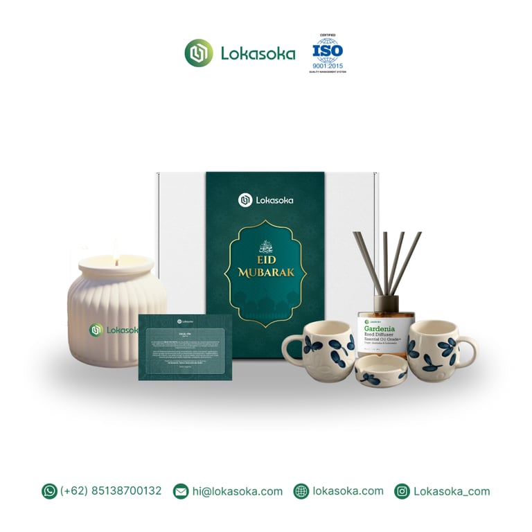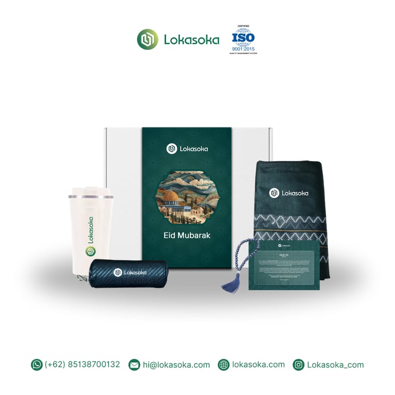 Lokasoka merupakan penyedia solusi hampers, souvenir, dan corporate gift yang menghadirkan produk fungsional dengan desain estetis. Melalui pendekatan yang personal dan fleksibel, Lokasoka membantu individu maupun perusahaan menciptakan momen berbagi yang berkesan di berbagai kesempatan, termasuk perayaan Idul Fitri.