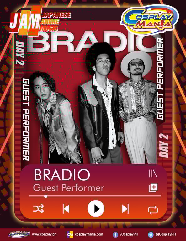 Japanese rock, disco, and soul band internationally recognized for their vibrant and funky opening themes like Flyers from Death Parade, Yu Gi Oh Rush!, Reborn as a Vending Machine, I Now Wander the Dungeon, and Duel Masters. Enjoy the Dancehall Music all night with BRADIO!