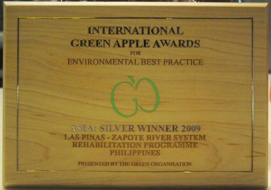 2. International Green Apple Award for Environmental Best Practice (2009) for the “Sagip Ilog” River Rehabilitation Program from the Green Organization of London in 2009.