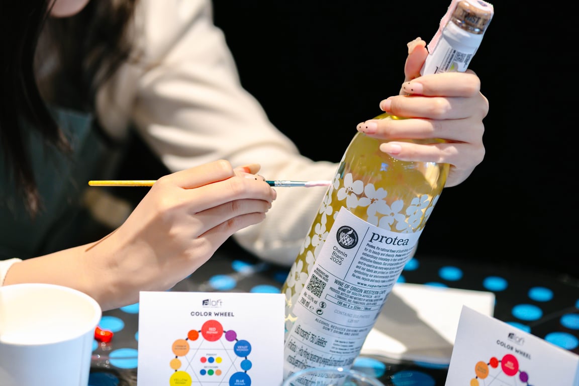 ร่วมสนุกกับอุปกรณ์สำหรับการเพ้นท์ที่หลากหลาย ไม่ว่าจะเป็นขวดไวน์ พร้อมเพลิดเพลินกับไวน์คุณภาพที่คัดสรรมาเป็นพิเศษ ได้แก่ Protea Wines, Pete’s Pure, Rawen Sauvignon Blanc และ Colinas Nevadas Cabernet Sauvignon รวมถึงแก้วไวน์และผ้าแคนวาส ให้ทุกคนได้สร้างสรรค์ผลงานในสไตล์ของตนเองอย่างเต็มที่